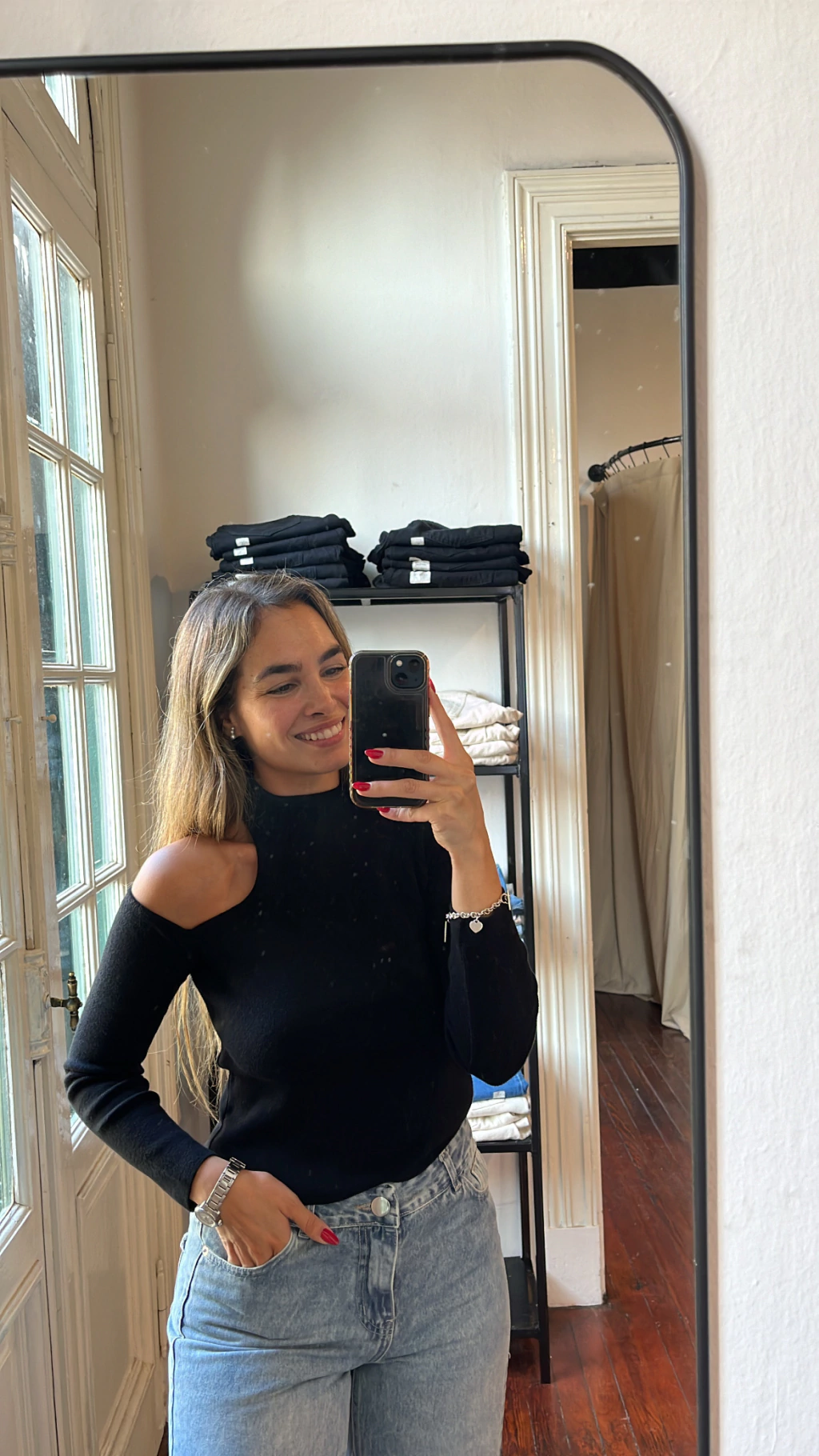 Sweater de talla única confeccionado en tejido de punto suave y elástico, diseñado para expandirse y adaptarse cómodamente a la forma del cuerpo. Gracias a su material flexible, se ajusta a distintas siluetas brindando confort y estilo.